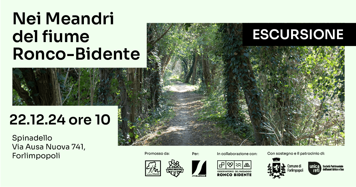 Quest’anno il tradizionale appuntamento al tramonto di fine anno lascia il passo a “Nei Meandri del fiume Ronco- Bidente“: una passeggiata con sguardo attento, per osservare il fiume e prepararsi alla Open Call fotografica che nei prossimi mesi inviterà fotografi, amatoriali e professionisti, a raccontare il Ronco-Bidente attraverso i propri obiettivi.